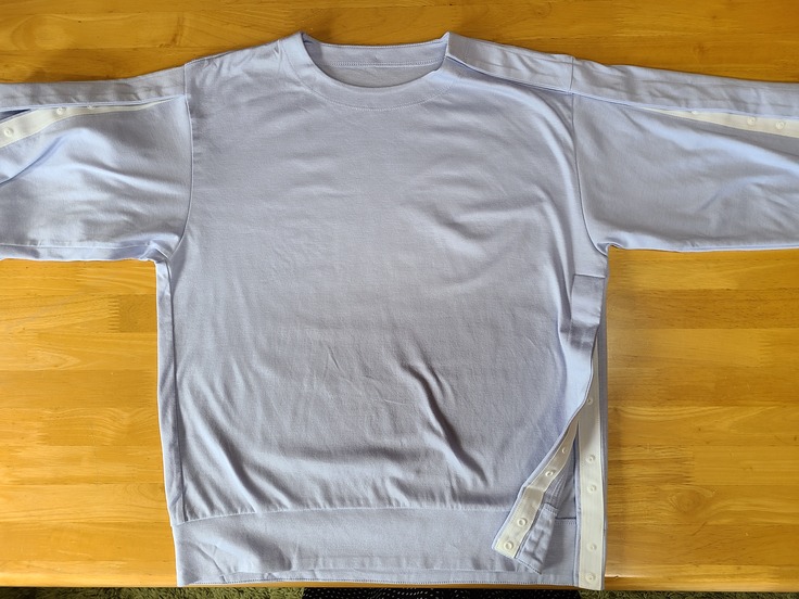 敷いた後ろ身頃の上に体を寝かせ、前身頃と袖を被せていく。そんなパジャマなら着替えの苦痛を軽減できますし、体の小さい女性でも楽に着替えさせられるのではないかと思ったからです。