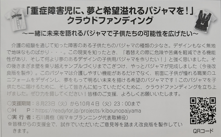 ご希望の方にはプロジェクト応援団として、弊社HPにお名前を掲載させていただきます。