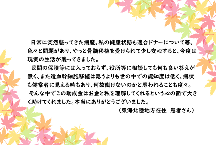 最後に最近、基金に送られてきた患者さんのメッセージを紹介させていただきます。