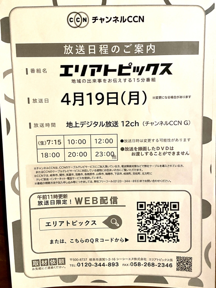 地元岐阜のケーブルテレビ局ですが、本日に限り、下記URLから、どこからでもご視聴いただけます(^^)
