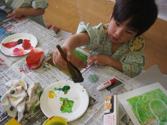 大人は絵を描くというと絵具と筆とパレットを用意しますが、子どもたちは、そのまま手に絵具をつけてごしごし描いちゃう。その表現方法や選ぶ色がその子の感情や心理状態を表しているのです。建築家と一緒に段ボールの基地を作ったときは、みんな点滴をひっぱったまま一生懸命に段ボールを積み上げていました。医師も一緒に参加することで、それまで怖い存在だった先生がぐっと近い存在になり治療がスムーズに進むようにもなるのです。