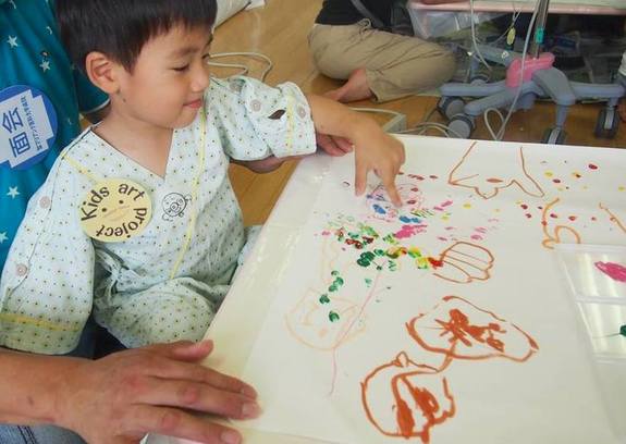 留学時代欧米の小児病棟を見学した際、入院中の子どもたちには、ボランティアの先生が授業を行い、「病院でも学校のように過ごせ、治療を受けながら、日常と変わりない生活できる」環境を作っています。それはとてもいいことだなと思い、帰国後、いくつかの病院に声をかけ、入院中の子どもたちと好きな絵を描くというイベントを開催しました。