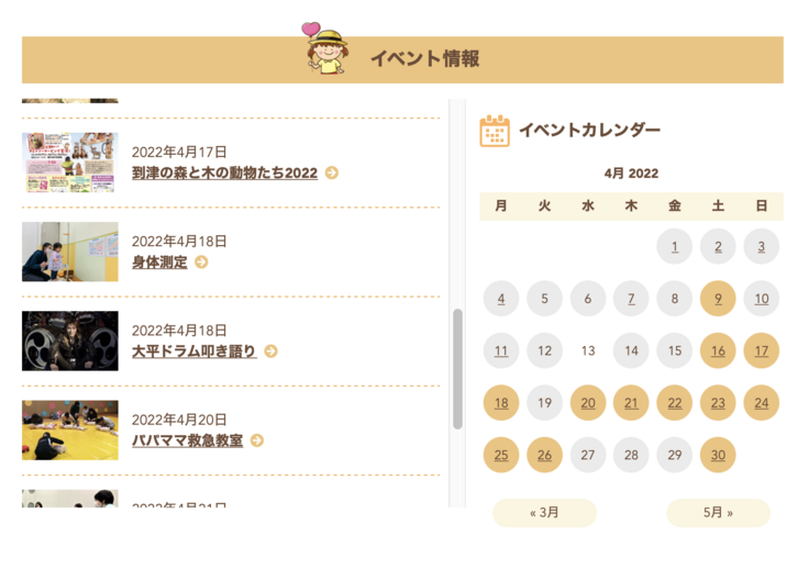 現在の市内イベントを網羅したイベントカレンダーをさらにかわいく見やすく的確に!