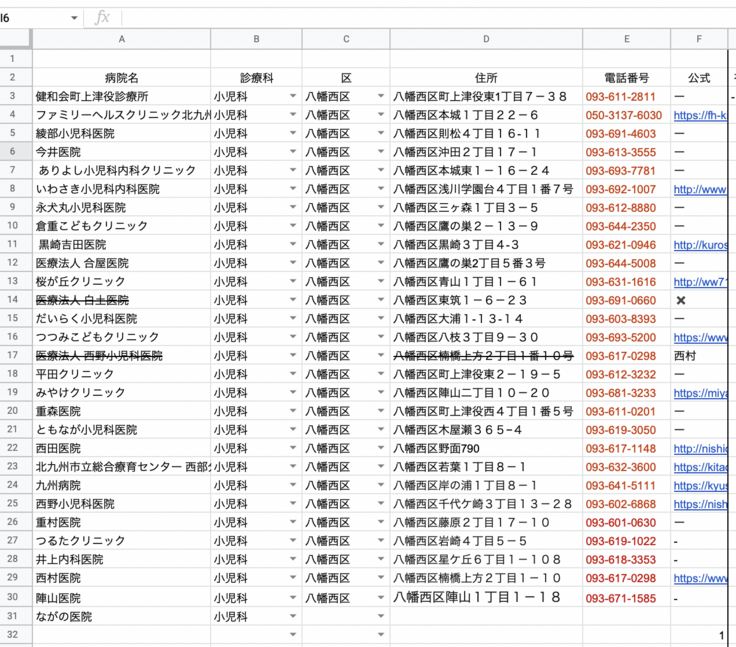 ↑病院情報収集。この情報の x7区 x8診療科...気の遠くなる作業...でもこれはまだ余裕の作業☆