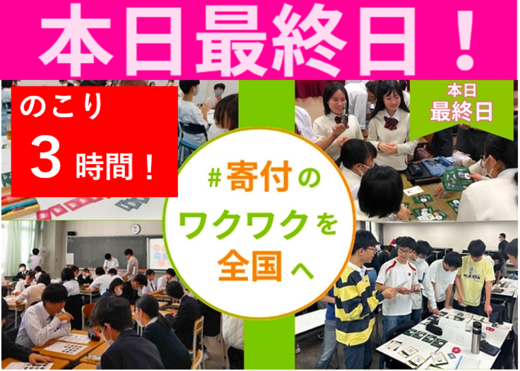 社会貢献教育を全国に広めるこのクラウドファンディング、本日2月14日(水)23:00までとなっております!