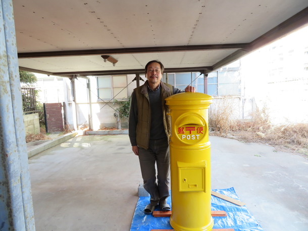 「おながわ・しあわせの黄色いポスト」は昭和36年(1961年)製のポストです。ポストの正式名称は「郵便差出箱1号(丸型)」というのだそうです。