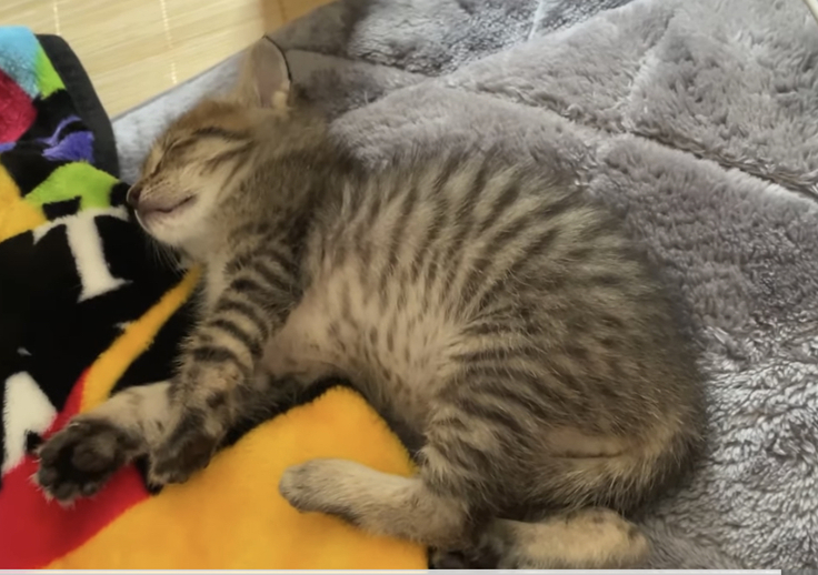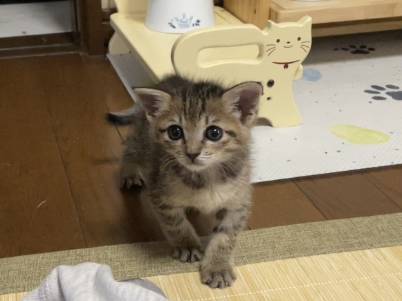 5月上旬、生後5日ぐらいの保護された仔猫を引き取りました。