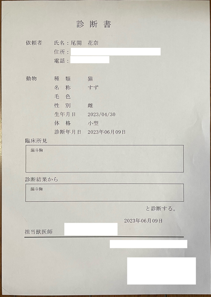 →ページ上に掲載している診断書や診療明細書などの資料は全て動物病院から掲載の許諾を得ております。
