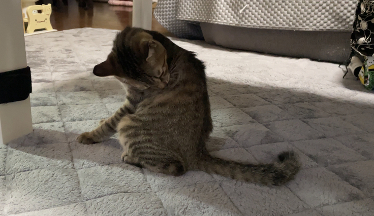 (帰宅後1時間ぐらいずーっと毛づくろいをしていました。笑)