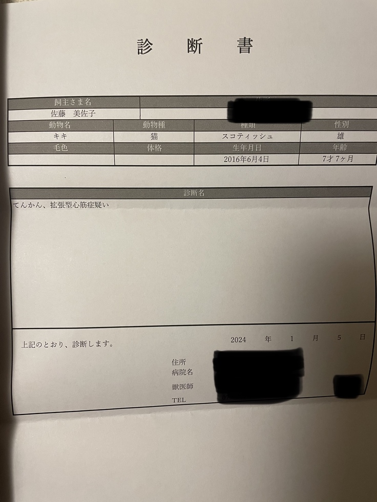 てんかん発作の原因は脳に何か異常があるかもしれないとのこと。だがキキは心臓病を抱えてる為、MRI検査をするのに全身麻酔が必須だが、耐えられないと思うから検査は難しく、また結果がわかったところで手術も難しいと病院の先生に言われました。