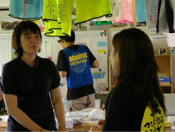 私が被災地に関わるきっかけをくれたのは、福田恭子さん。 福田さんは東北に行くまでは、大人しい内気な性格でした。そんな彼女が被災地でボランティアの経験から、東北のことをよりたくさんの人に伝え考える場をもちたいと、東北と東京、そしてアメリカの学生をむすぶ団体のリーダーになり、いまも活動を続けています。