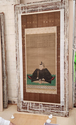 現在肖像画は吉川家文書と同様古くなった肌裏紙を取り除き、新たな肌裏紙によって補強され綺麗にご覧いただくことができます。また、表装は元の表装を修理していただくことになりました。