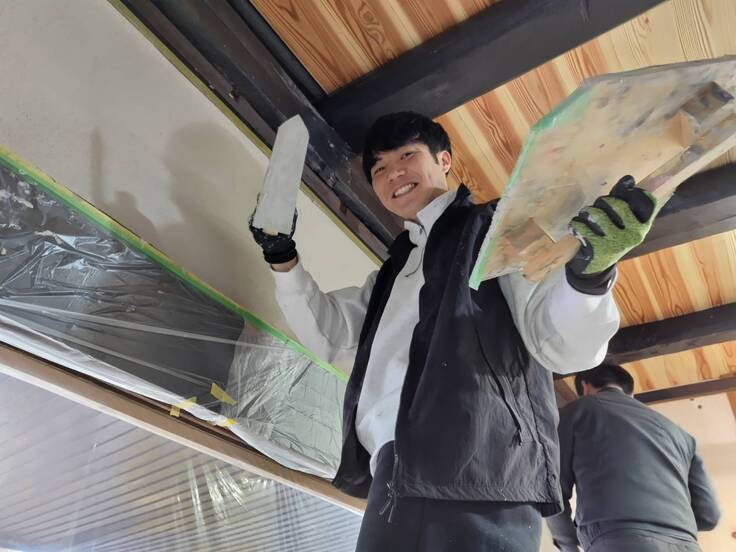 土壁塗りは職人さんがスラスラ塗っているので簡単そうに見えましたが、実際に塗ってみるとかなり難しくとても良い経験になりました。