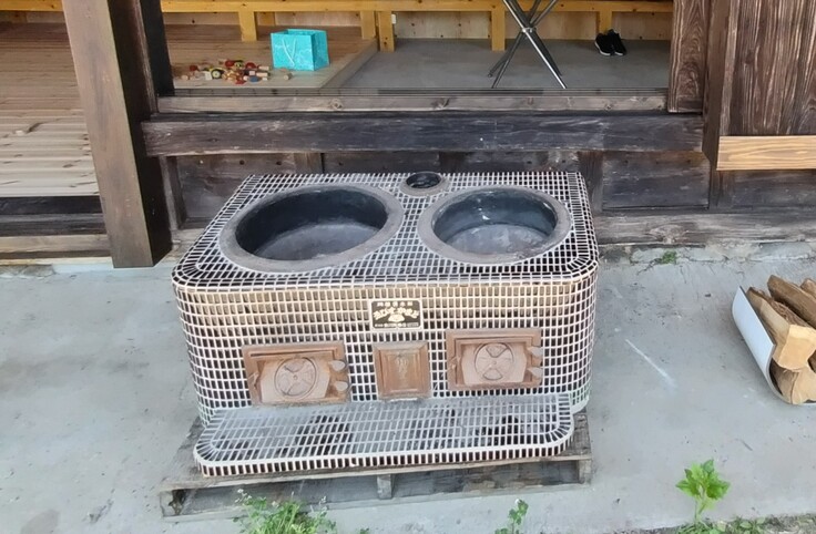 地域の会館に昔からあった竈を頂きました。昨年、古民家を改修する事を地域の方にお伝えし竈を譲ってほしいとお願いしたところ、使ってもらえるならと快く譲ってくださいました。