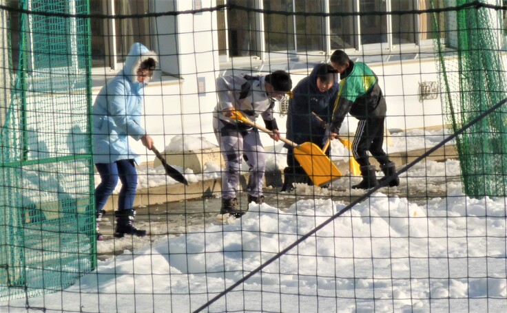 また、本校の新校舎建立により細長い形に狭められてしまった駐車場は、北国である八戸に雪が降った際にも私たちを苦しめます。八戸市は雪の量はそれほど多くはありませんが、1,2月には最高気温がマイナスの日がよくあります。ほとんど陽が当たらず、溶けることなく端に寄せられ徐々に増えていく雪は、ただでさえ少ない駐車スペースと週末のお父さんの体力を奪っていきます。(毎朝の子供たちと先生方の雪かきに加え、多く降った時には『おやじの会』で除雪作業をします。これは言うまでもなく重労働です。お父さんに自衛隊員が多いのが救いです。)