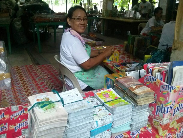 そして洗ったジュースパックは数を数えて柄ごとに仕分けされ、縫製担当のメンバーの元へ。