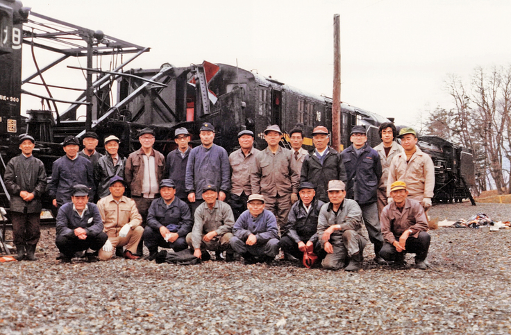 キマロキが名寄公園に保存されて間もない頃の集合写真には、名寄機関区に勤めていた方々・OBの皆さんが保存会メンバーとして写っています。