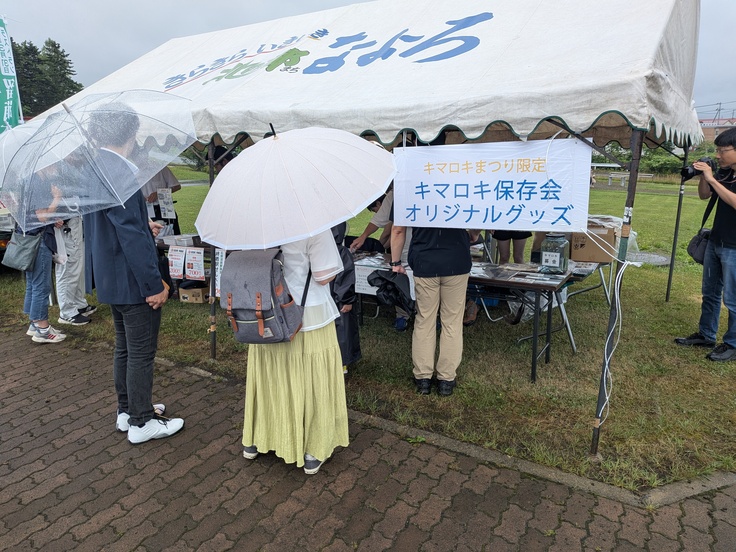 19日はあいにくの不安定な天気でしたが、博物館制作のオリジナルキマロキグッズの販売をはじめ、キマロキ清掃体験、創作キッチンたまさぶろうさんの特製お弁当、特大の鉄道ジオラマ運転、キマロキぬりえコーナー、名寄市天文台コーナー(熊出没で施設休館のため会場変更)などあり、家族連れで賑わっていました。