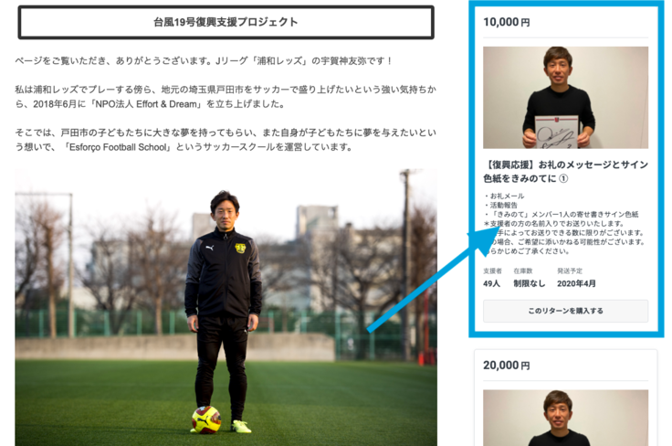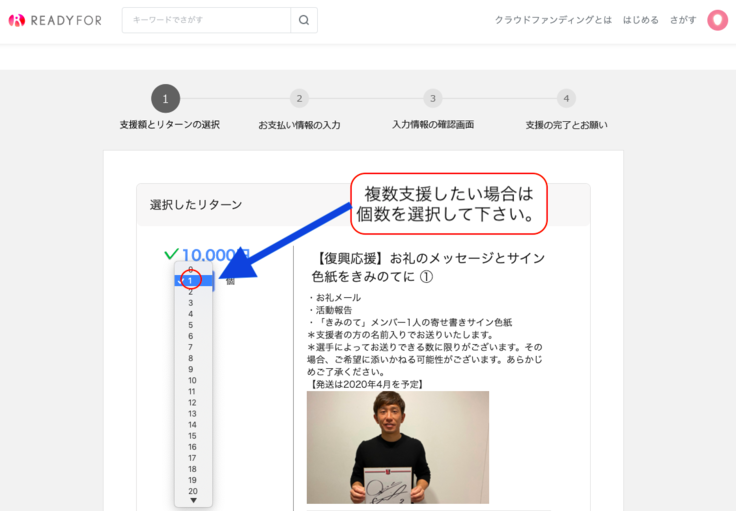 支援したい金額を選び[このリターンを購入する]をクリック