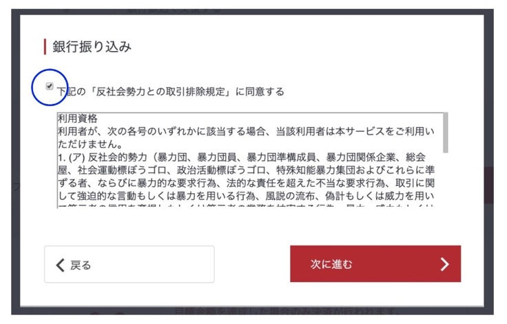 下記の「反社会勢力との取引排除規定」に同意するにチェック