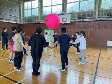 ボールが大きくて扱いやすいので、すぐにコツを掴み、ボールコントロールが出来るようになりました。運動が苦手な学生、生徒もみんなと交わる事ができていました。チームで戦術を考え、話し合って実行するチームも見られました。