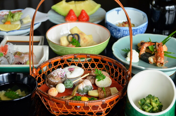 京都は長く都が置かれたことから、日本の最先端の文化の流行と華やぎを体現する場となりました。なかでも料亭は、日常から離れたおもてなしの場であるとともに、時には舞踊やファッションに身近に接する場であり、季節の移ろいとともにひとの親睦を深める固めの場でもありました。京料理のうつくしさは形式化されたようでいて、常に新たな挑戦を続けています。各料亭が腕を磨き切磋琢磨する中で、京料理とともに器・庭園・美術品・調度品などのさまざまな日本文化が長年に亘り守り受け継がれました。