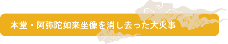 本堂に安置されていた木造阿弥陀如来坐像(岡山県指定重要文化財)や岡山県下最大の大きさであった天井伽藍のほか、本堂に安置されていた文化財のほとんどが灰燼に帰しました。
