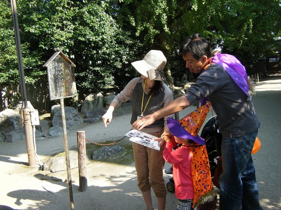 昨年は福岡県久留米市のJR久留米駅近辺で、地元の方々、久留米市に唯一残る武家屋敷「坂本繁二郎生家」、全国的に有名な「水天宮」のご協力を頂き、1歳に満たない子どもさんから40歳代の方まで幅広い年齢で35名(8グループ)にご参加いただきお菓子集めの旅に出ました。