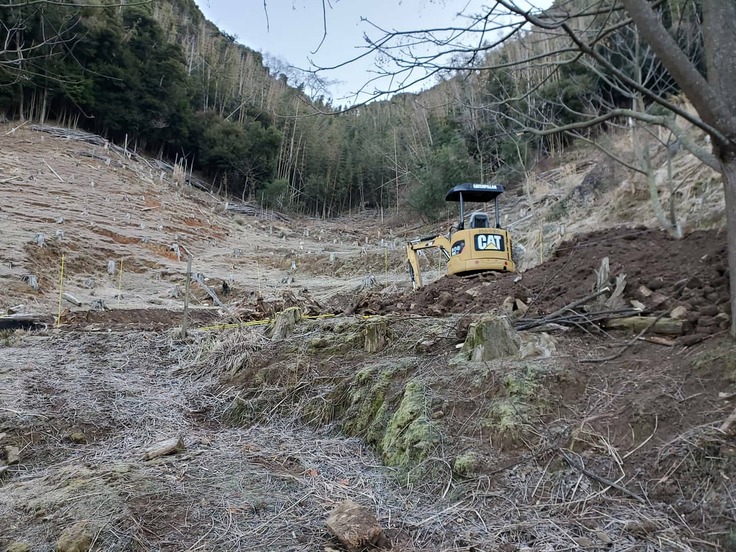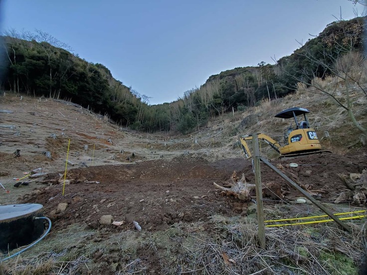 少し山を削り、雨の流れも考えながら、しっかりとした土台を作っていきます。