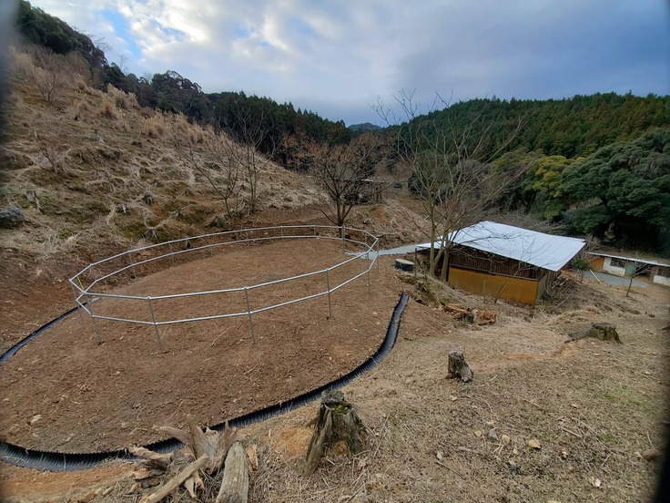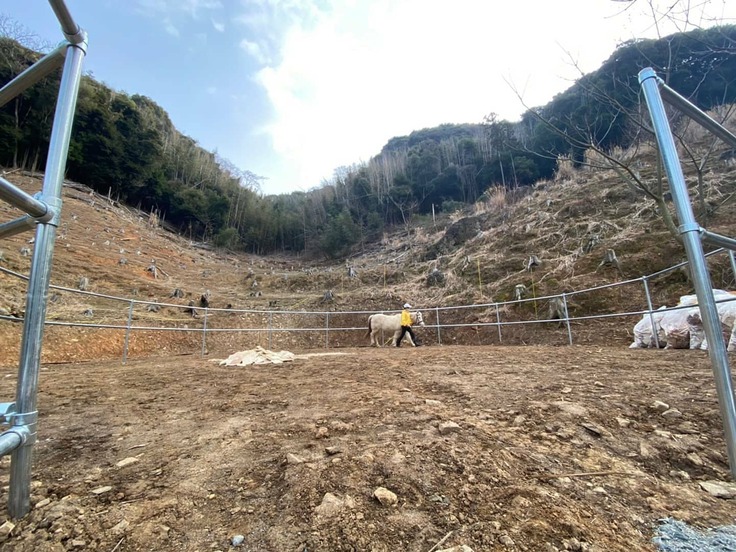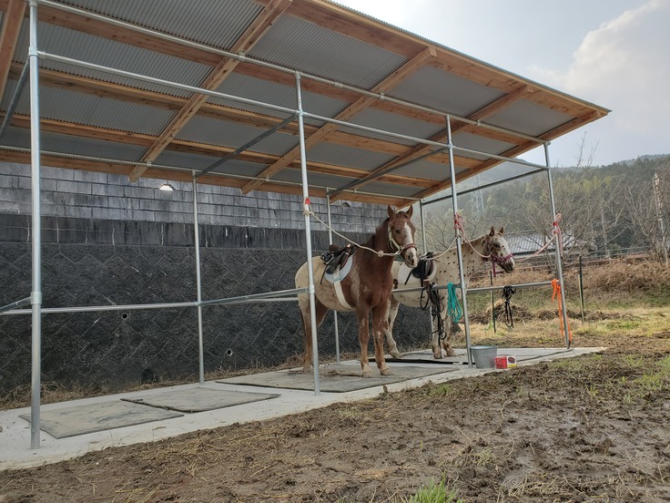 プロジェクト終了後、1月中旬から馬の体をきれいにしたり乗馬の準備をする『蹄洗場』と馬の運動をする『丸馬場』の工事に取りかかりました。