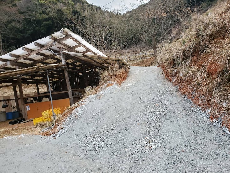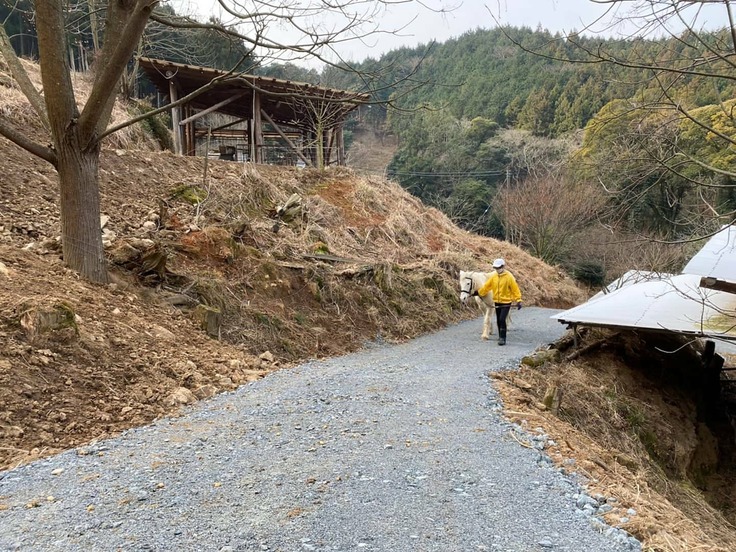 丸馬場へ登る道は赤土で滑りやすいため、砂利を敷き詰めました。