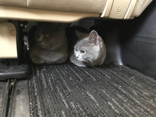 今日も兄弟で仲良くしています!(左下は動物病院へお出かけ前の二人)(右下は動物病院に連れてゆく車中の写真)後部座席の下でお兄ちゃんと一緒です。(右がシェリー)