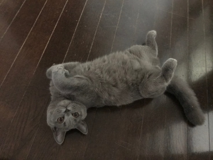 シェリーはうちに来てから3ヶ月、まだ生後5ヶ月の赤ちゃんです。ブリティシュショートヘアは抱っこされることが嫌いな猫のようですが、シェリーはだっこも嫌がらず、そしてお兄ちゃんのジンより食いしん坊で、甘えん坊で、いたずら好きの、とてもお茶目で可愛い女の子です。
