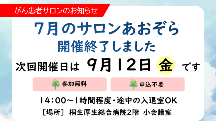 7月がん患者サロン「サロンあおぞら」開催報告&次回9月開催のお知らせ
