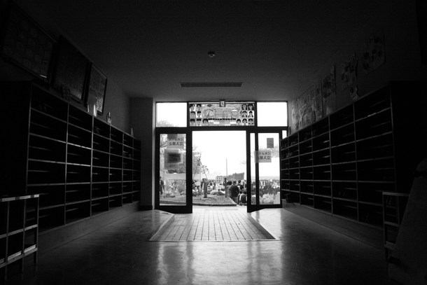 2011年3月11日の震災以降、福島県会津地方で廃校になった木造校舎を拠点に活動をしています。震災の福島を記録するための拠点を探していたところ、目の前に現れたのが朽ちた木造校舎。廃校になった小学校でした。柱には名前の入った背丈のしるしが残るこの分校で、映画制作に取り組んでいます。