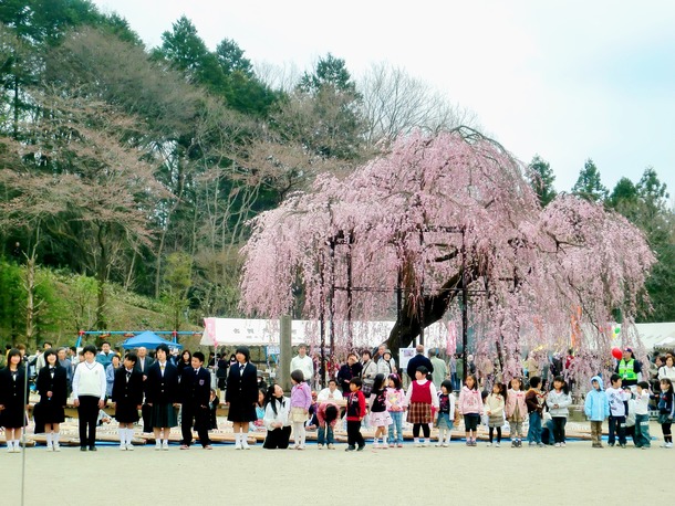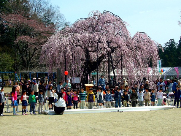 しかし、都会志向の流れと少子化により、次第に児童数が減り始め、1997年にはとうとう複式学級(2、3年生が一つの教室で授業)となってしまいます。時を同じく、校庭の孝子桜が衰え始め、その2年後には4、5年生までもが複式学級に、そして孝子桜もあと5年の命と宣告されてしまいます。