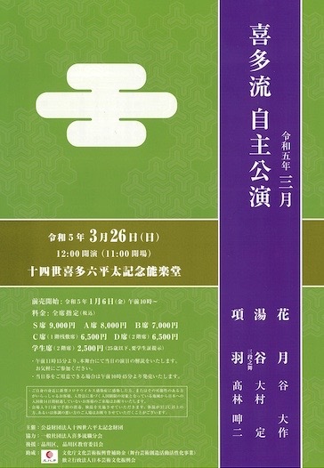 3月26日の「喜多流3月自主公演」は改修前の喜多能楽堂で開催する最後の自主公演となります。