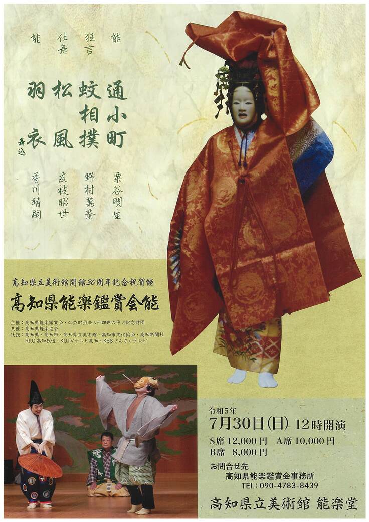 7月30日(日)「高知県能楽鑑賞会能」が高知県立美術館開館30周年記念祝賀能として開催されます。