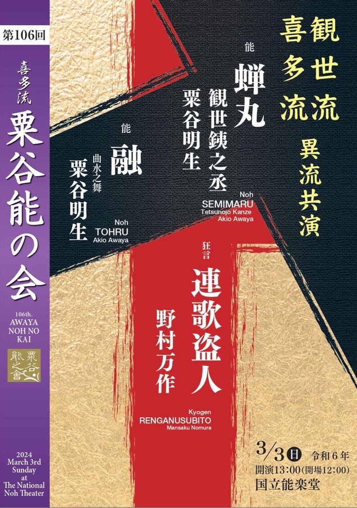 【前売り券情報】『第106回 粟谷能の会』『国立能楽堂二月普及公演』