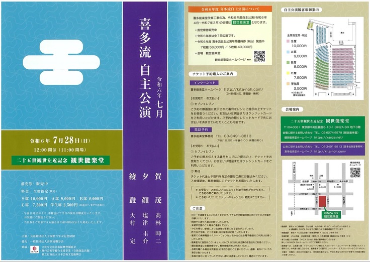 【公演情報】7月28日(日)「喜多流 7月自主公演」当日券もございます!