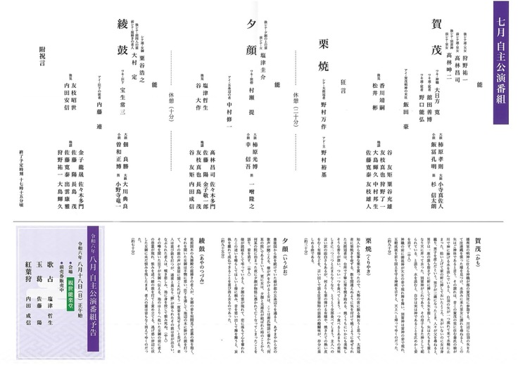 2024年7月28日(日)12時開演(11時開場) 観世能楽堂