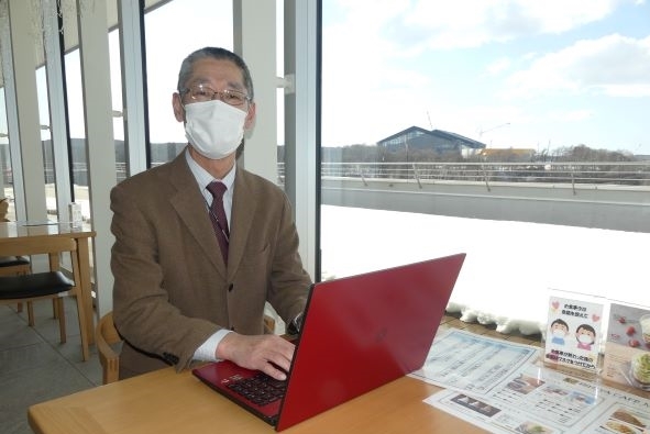 西向きの大きな窓から新球場を望み、春の陽射しを浴びながら