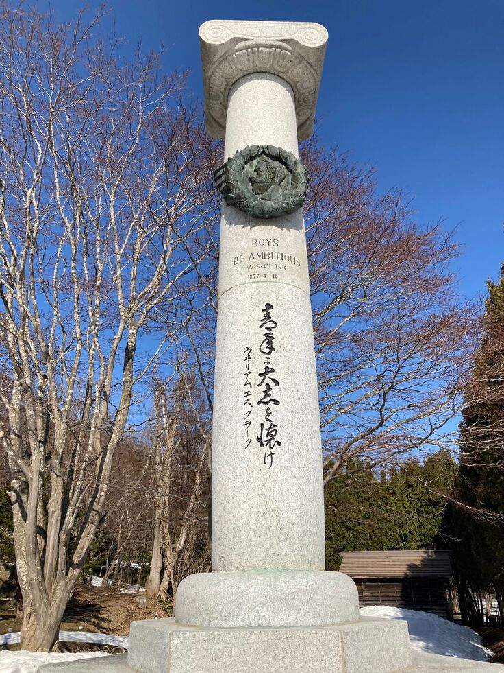 リターンにつきましては、クラウドファンディング目標額達成が確定してから実行となります。今しばらく「お試し」登録で「WEB北広島新聞」をご覧いただけますようお願いいたします。目標未達成の場合は、ご支援金は皆様のもとに返還されます。(画像は北広島市「旧島松駅逓所」跡に立つクラーク碑)