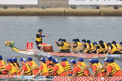 ドラゴンボートとは、ソフト・スポーツと呼ばれる、性別や年齢などを問わず誰でも楽しめるスポーツで、10 名~20 名の漕手、1 名の太鼓手、1 名の舵取りで競技を行います。