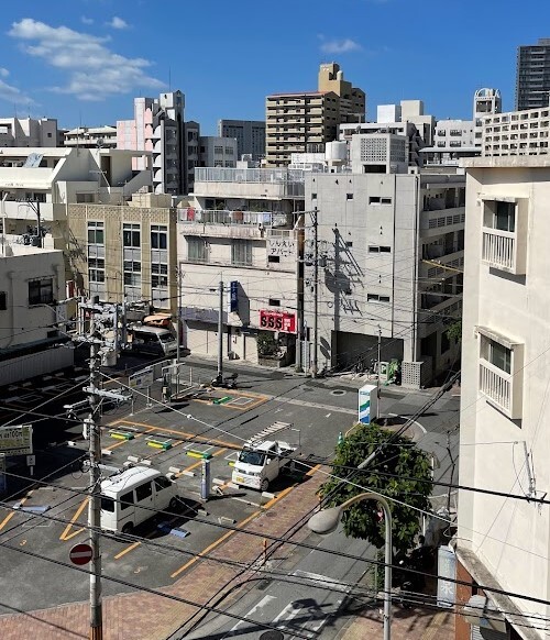 向かいのビルから撮影(奥のコンクリートの集合住宅1F)@栄町