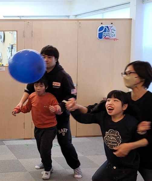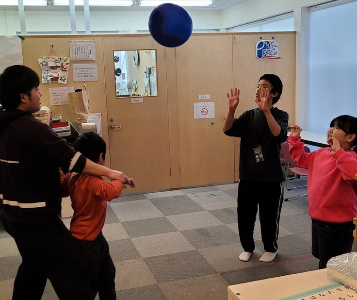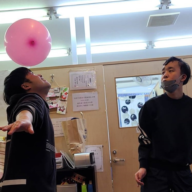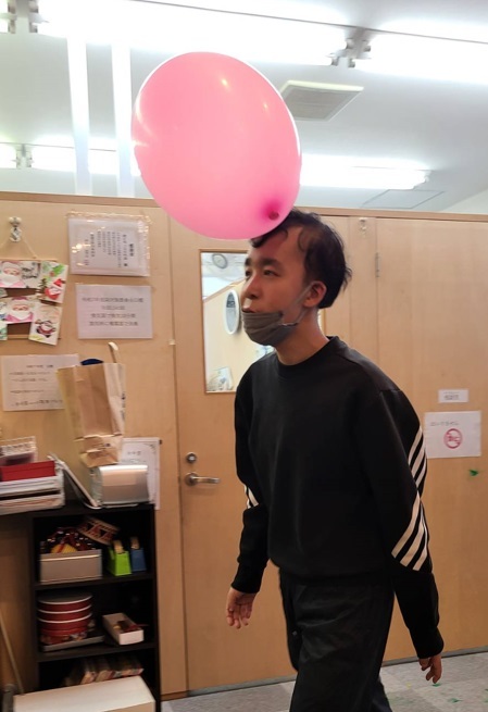 みんなが風船にさわれるように、自主的に遊ぶことが難しい利用者さんは、職員がしっかりサポートしていきます💪