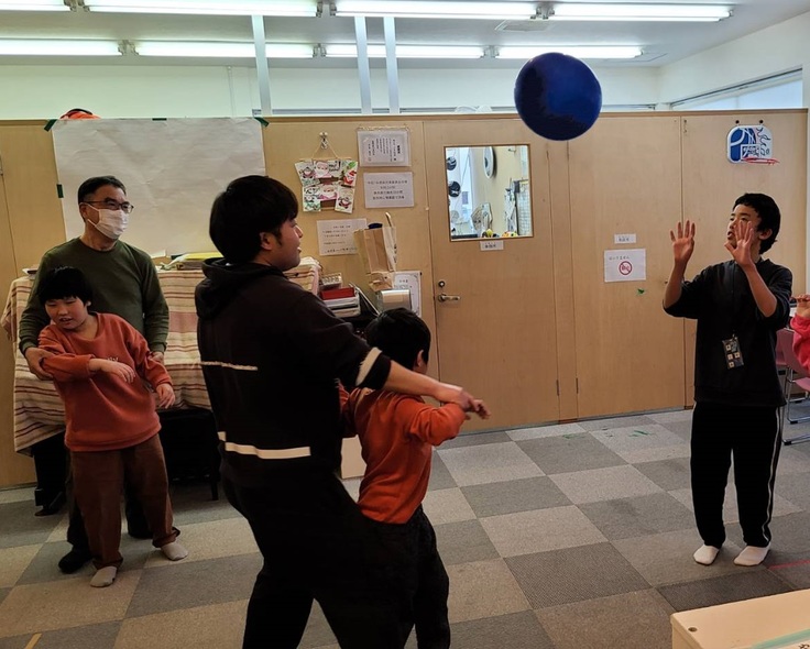 職員にサポートされながら参加している利用者さんも、体を動かしているうちに、心が活性化されるみたいです🏃