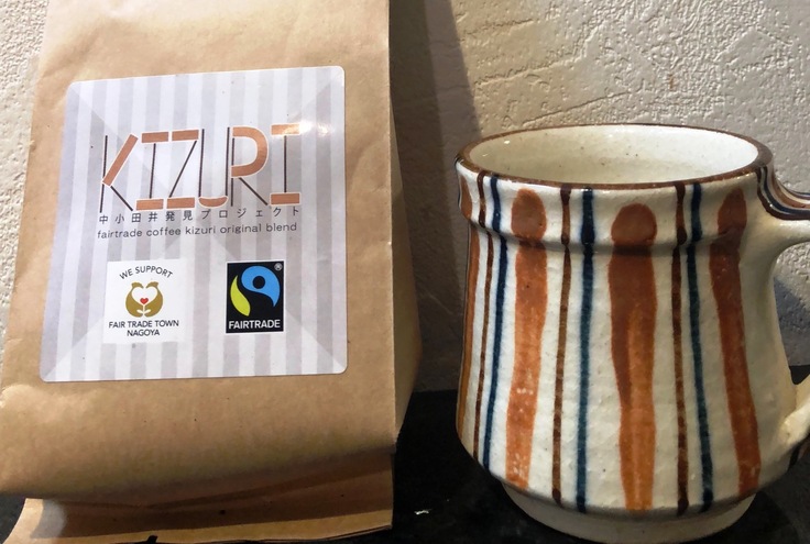 ラベルの左側は、『フェアトレードタウンなごや応援ロゴマーク』です。