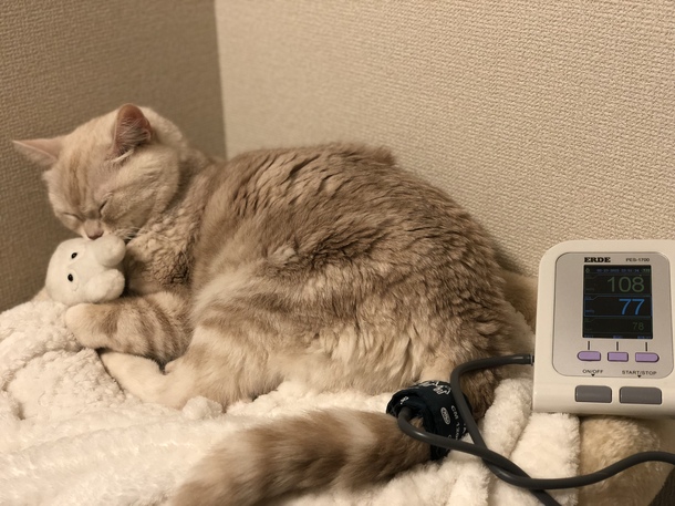久々に小さい頃からのお気に入りのトトロを枕にして落ち着いていたので、血圧測定しました。