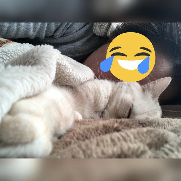 今日はなぜだか、自分のキャットタワーのベッドではなく、私の横にいます。